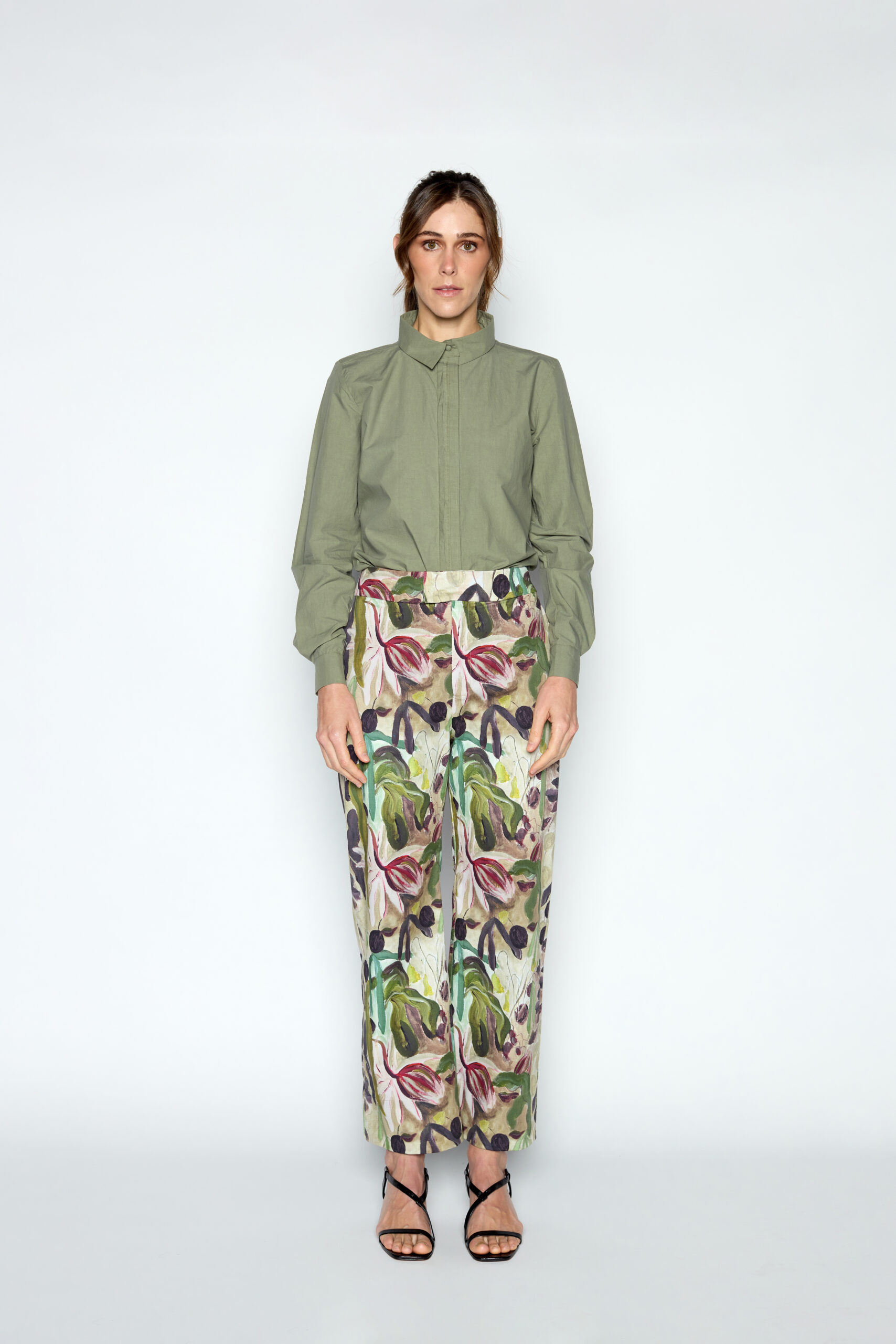 A signature high-waisted, ankle-length pant. Form-fitted at the hips before loosening into a relaxed leg. Featuring welt pockets on the back, side pockets, and a hook, zip, and button fastening at the front.